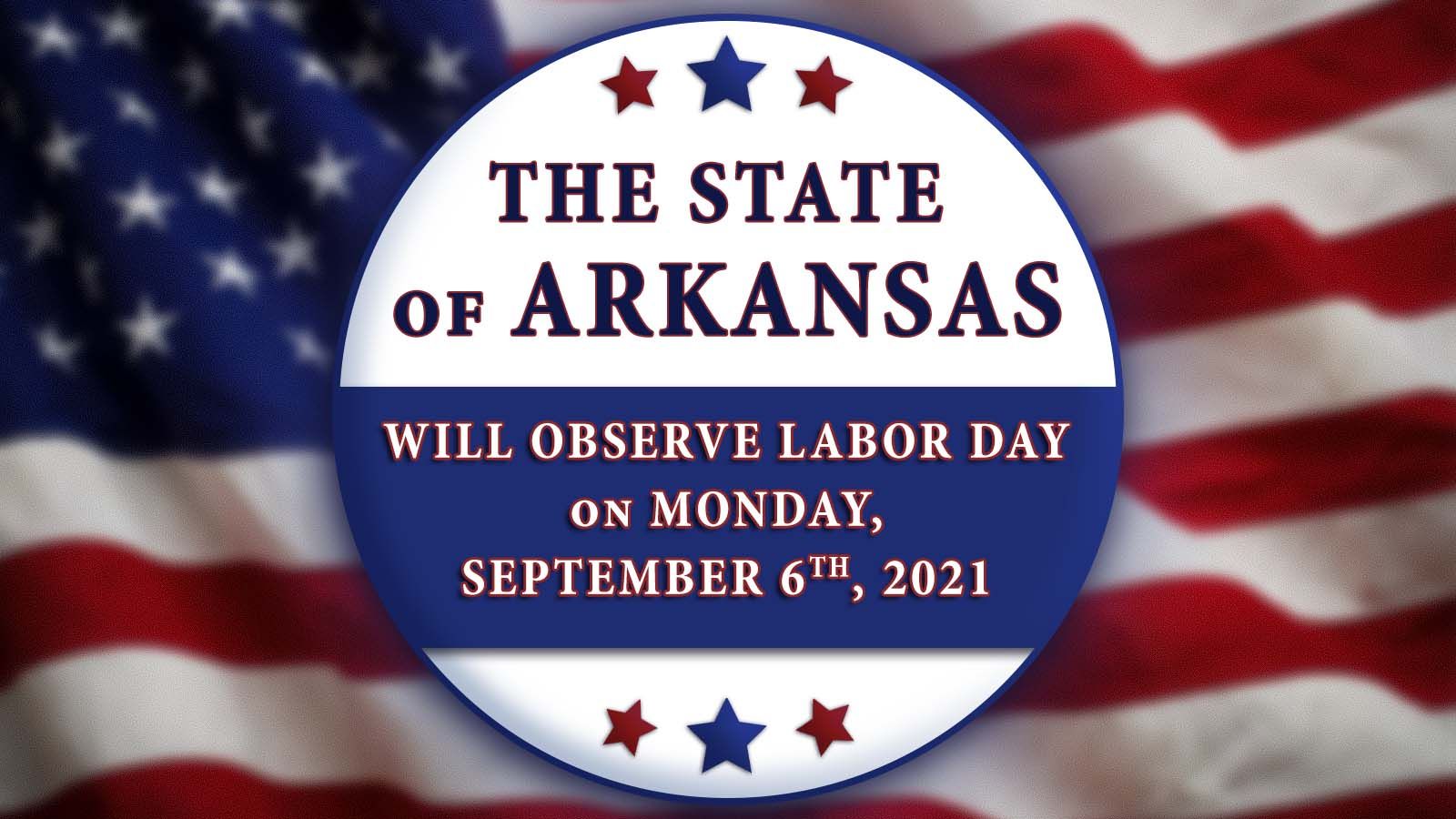 The State of Arkansas will observe Labor Day as an official state holiday on Monday, September 6th, 2021.