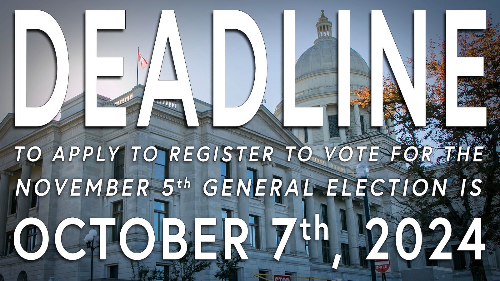 As we approach the November 5 General Election, we want to remind you that early voting begins on October 21. The last day to register to vote is October 7. You can find a voter registration application at sos.arkansas.gov.