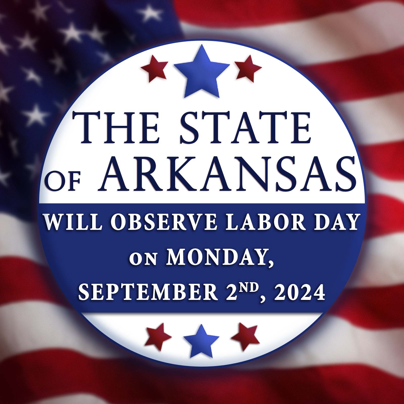 The State of Arkansas will observe Labor Day as an official state holiday on Monday, September 2, 2024.