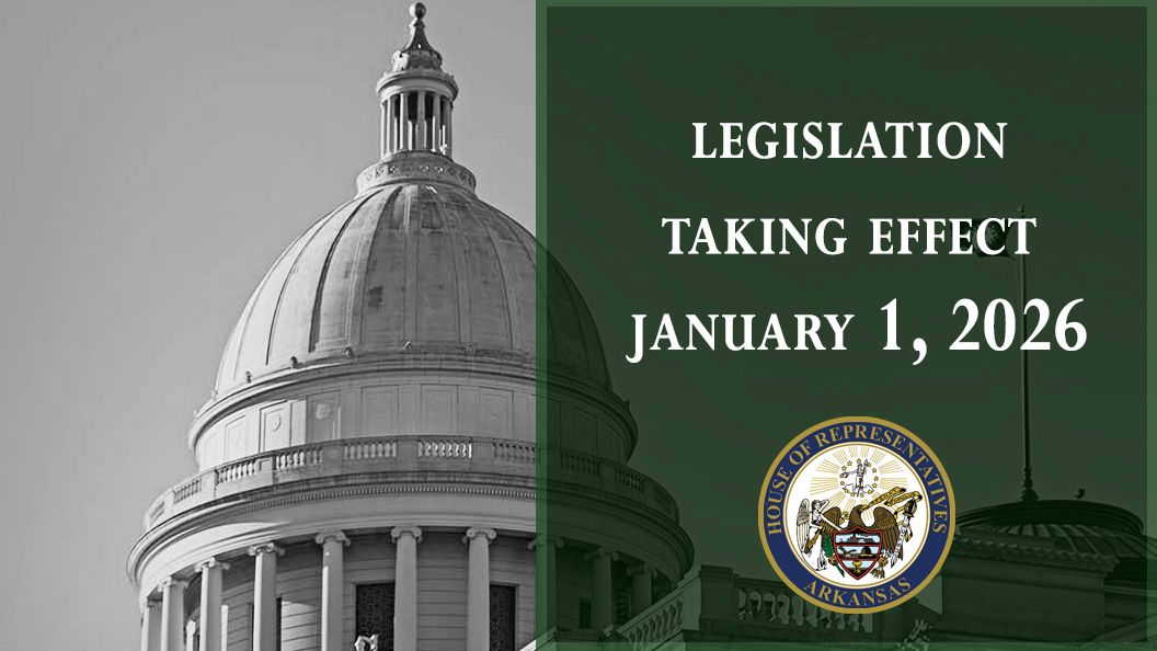 As the new year approaches, Arkansans will soon see a number of laws passed by the House of Representatives and the General Assembly take effect. While the majority of legislation approved during the 2025 Regular Session became law 90 days after adjournment, many measures included a delayed effective date of January 1, 2026 to give state agencies, businesses, insurers, and consumers time to prepare for the changes.