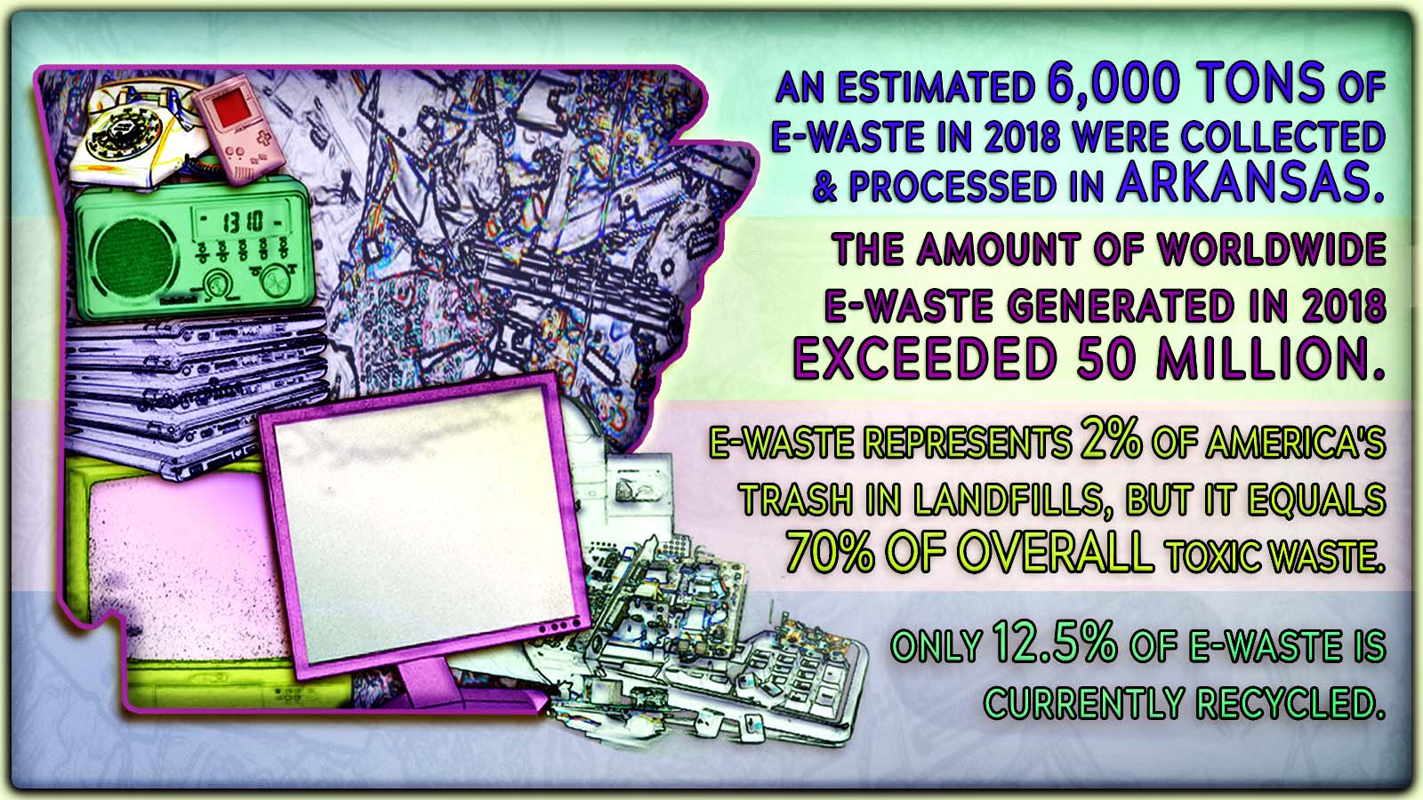 An estimated 6,000 tons of e-waste in 2018 were collected and processed in Arkansas.