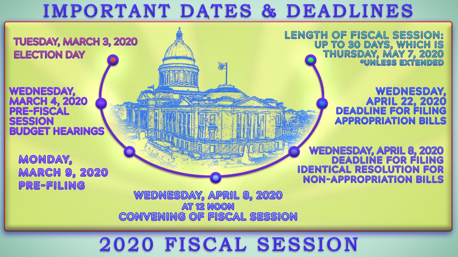 Members can begin filing appropriation bills and identical resolutions on Monday, March 9, 2020. As a reminder, the legislature cannot take up any non-appropriation bills during the Fiscal Session unless 2/3 of the body votes in favor of a resolution.