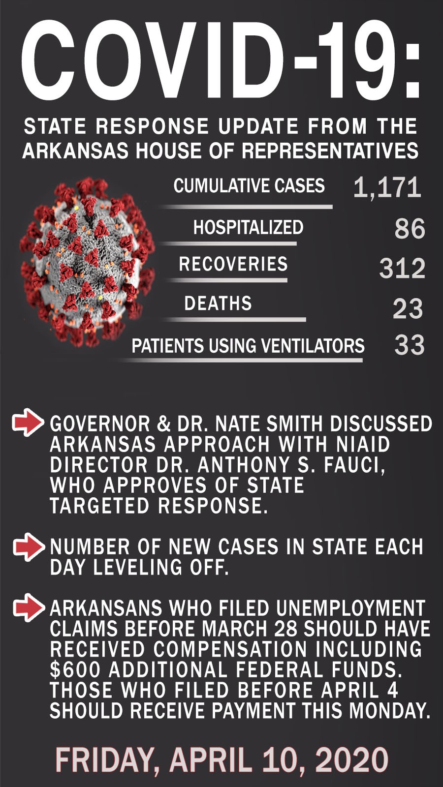 · The Governor reminded Arkansans on this Easter weekend the importance of continuing social distancing and limiting social gatherings to less than 10 people.