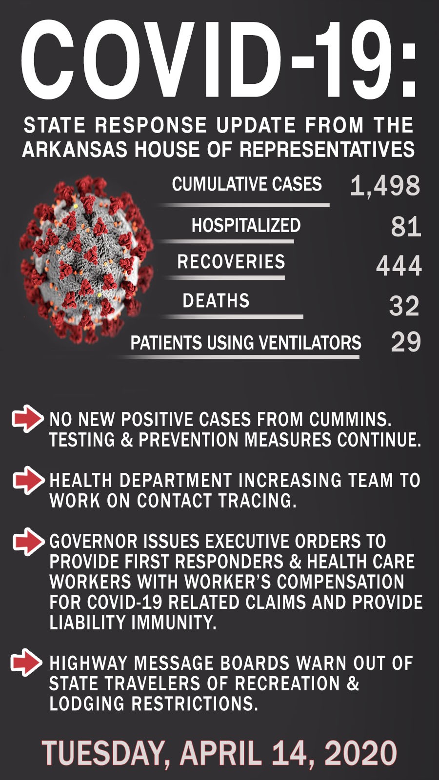 · The Arkansas Department of Health continues to increase the amount of staff working on contact tracing. The department plans to have 150 people working to track the chain of transmission.