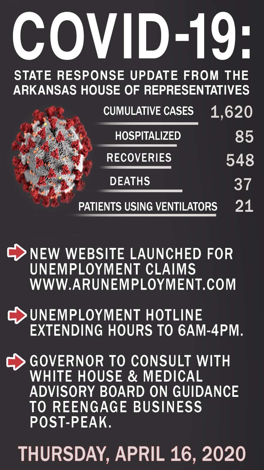 · The Governor said he will be on a call with the White House this afternoon and he will speak to his medical advisory board tomorrow to receive guidance on how to re-engage business after the number of COVID-19 cases peak in Arkansas. Health Secretary Dr. Nate Smith said while it is way too early to do a victory lap, we should begin to plan ahead.