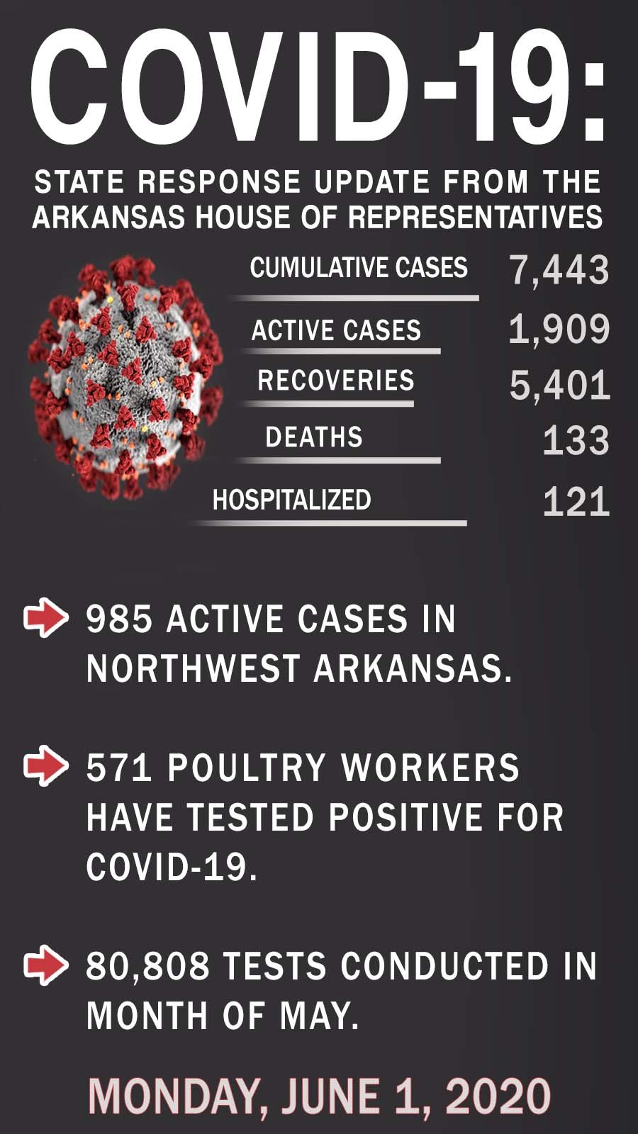 The Governor said the state surpassed the goal of 60,000 tests during the month of May. This month 80,808 tests were conducted in Arkansas.