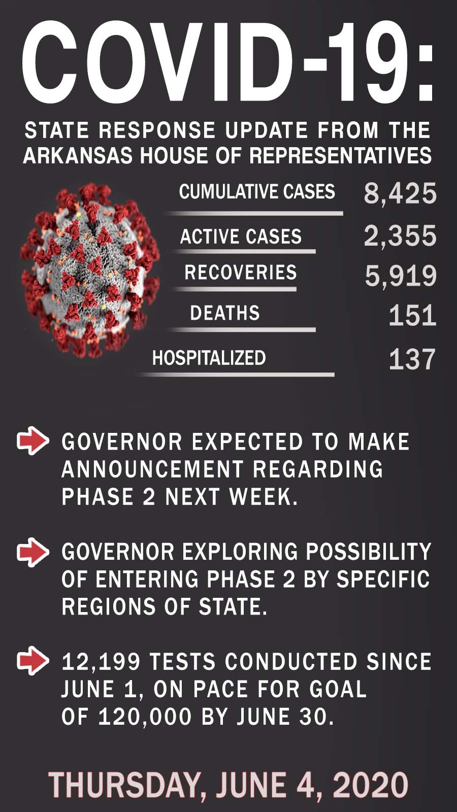 Since June 1, more than 12,000 tests have been conducted in Arkansas. Currently, we are on track to meet the goal of 120,000 tests conducted during the month of June.