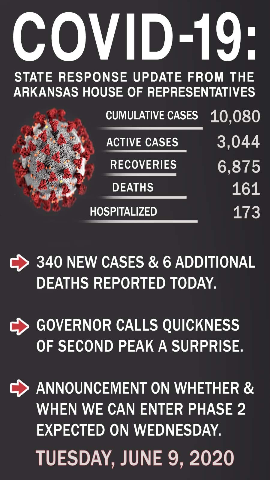 The Governor delivered the daily COVID-19 briefing from Jefferson Regional in Pine Bluff today where the first case in the state was reported more than 2 months ago.