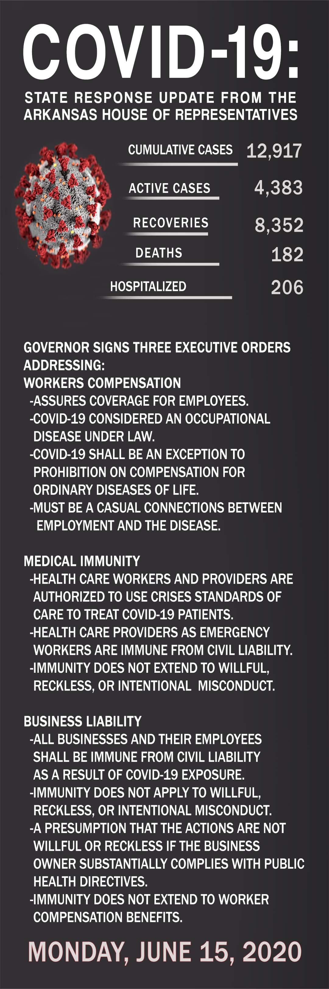 The Governor signed three executive orders today addressing liability issues related to COVID-19. The Governor was joined by House Speaker Matthew Shepherd and several members of the General Assembly who worked with the Governor to address the issues and avoid the need for a special session during the pandemic.