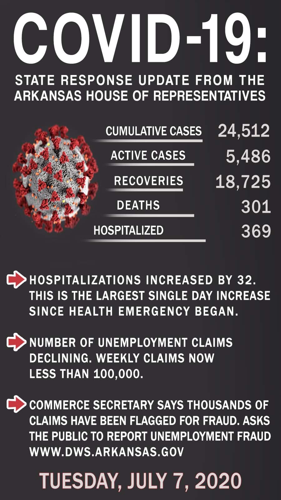 Secretary Preston said his agency is seeing attempts of fraudulent claims by individuals using other's personal information. Several thousand claims have been flagged while the agency is reviewing. If someone is using your information or you are aware of fraudulent claims, you are asked to report it at dws.arkansas.com and file a police report. You can also email ADWS.InternalAudit@Arkansas.gov or call 501-682-1058.