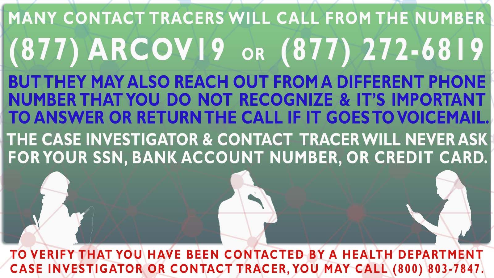 Many contact tracers will call from the number (877) ARCOV19 or (877) 272-6819, but a contact investigator may also reach out from a different phone number.