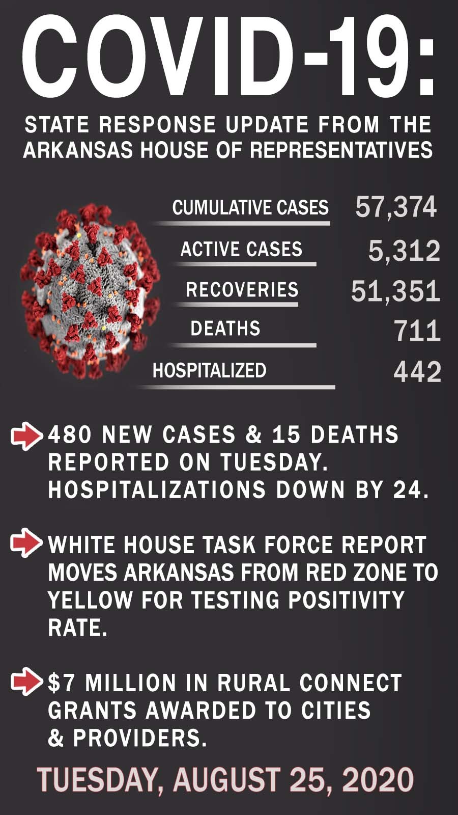 The Governor said the White House Coronavirus Task Force report has moved Arkansas from a red zone to a yellow zone for test positivity.