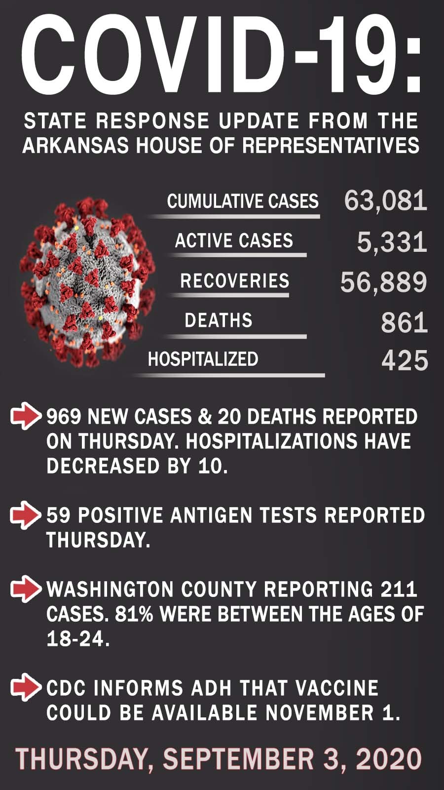 The Governor said the state received a letter from the CDC indicating a vaccine could be available by November 1st. The agency is encouraging states to prepare for storage and distribution.